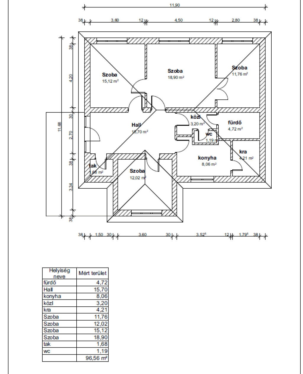 Helyiségek elosztása:
