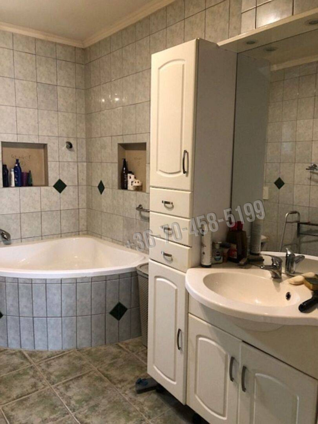 • nagy méretű fürdőszoba káddal, tusolóval és WC-vel