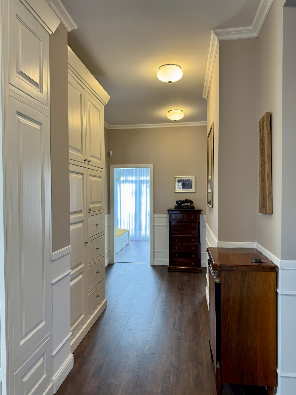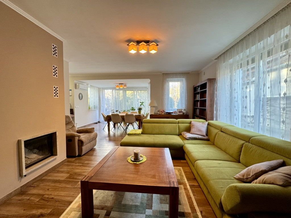 A lakóteret lenyűgöző csillárok, falikarok illetve led világítás teszi még különlegesebbé