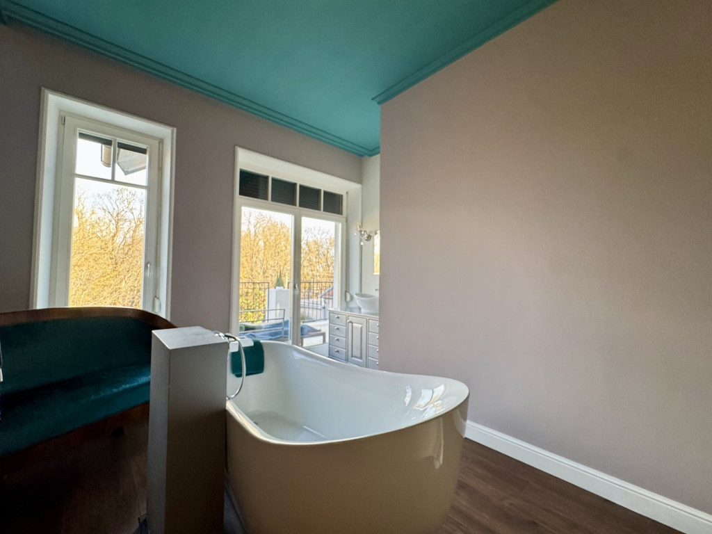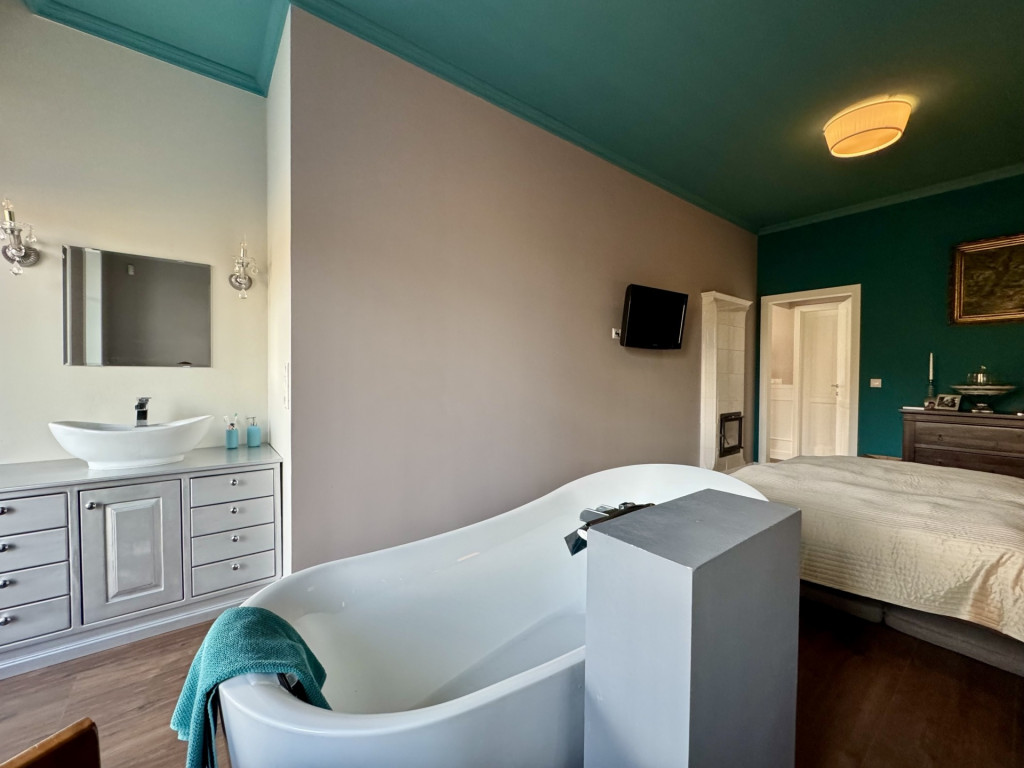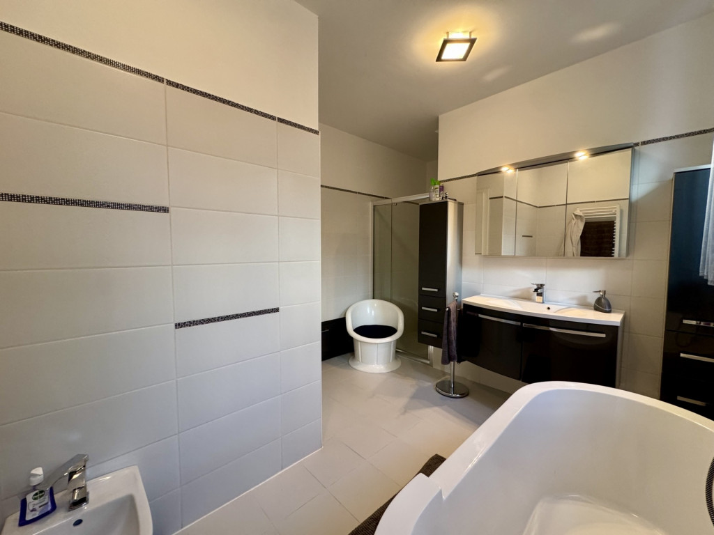 Ezen a szinten 3 hálószoba, melyből az egyikben elhelyezésre került egy szabadon álló kád. Gardrób, külön mosdó.