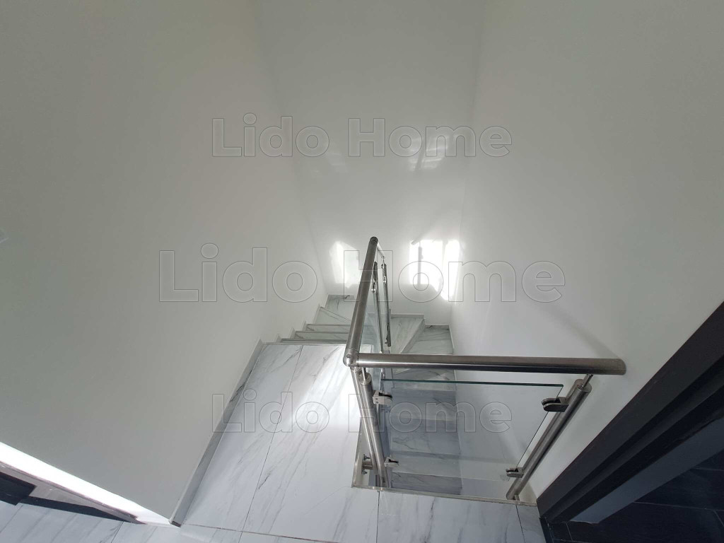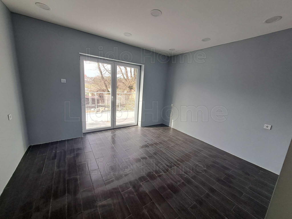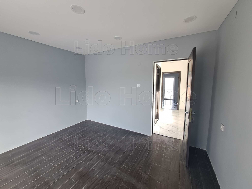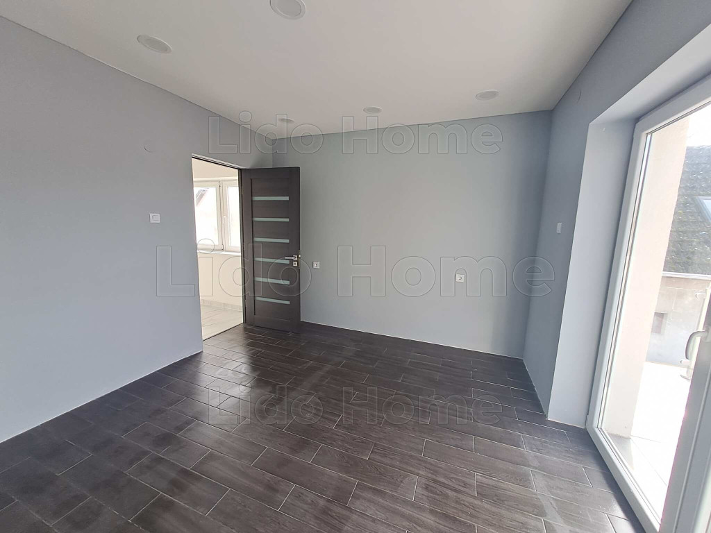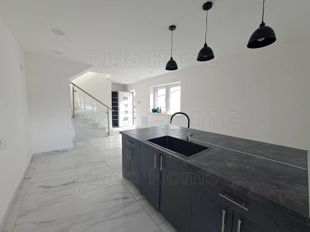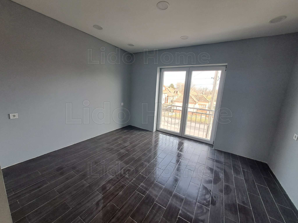 A földszinten egy tágas, 32 m²-es konyha került kialakításra, amelyből közvetlen kijárat nyílik a 12 m²-es hátsó teraszra, ideális helyszínt biztosítva pihenéshez vagy családi összejövetelekhez. Ezen a szinten található továbbá egy szoba, egy fürdőszoba, valamint a lépcső alatt kialakított praktikus tároló. Az emeleten két külön nyíló szoba, egy fürdőszoba és egy előszoba kapott helyet, az egyik szobából pedig erkély nyílik az udvar felé, nyugodt, zöld panorámával.