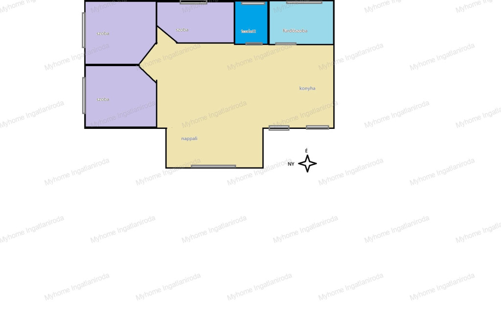 -tájolása D-NY , délnyugati tájolásnak köszönhetően világos és napfényes teret biztosít az otthon minden részében.