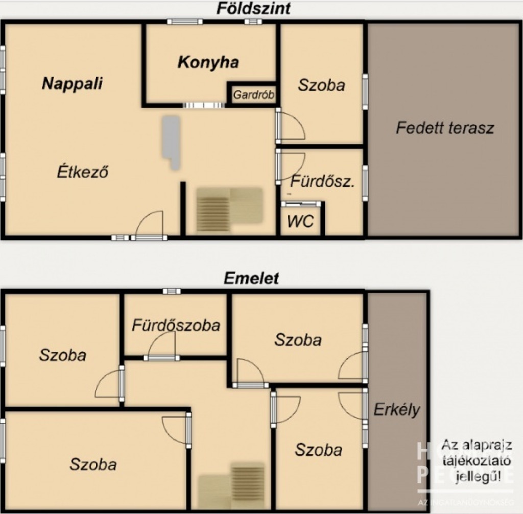 Emelet: 4 db hálószoba, fürdőszoba, erkély