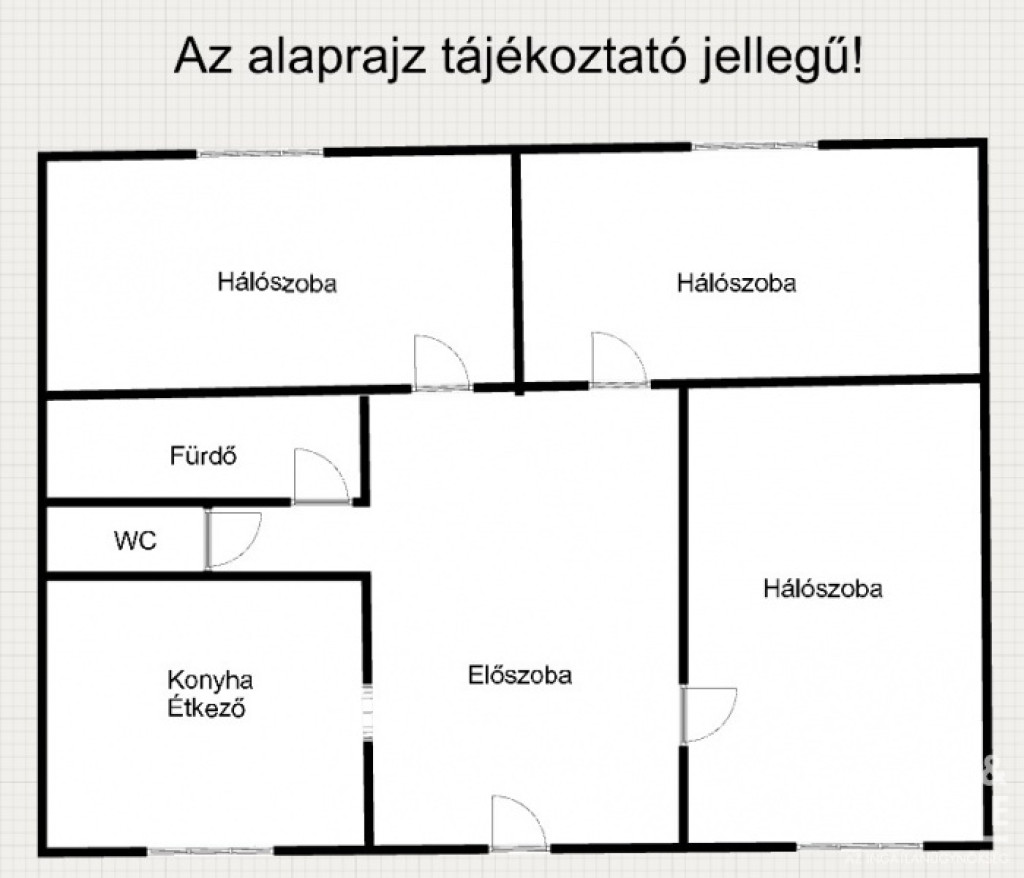 3 szoba, fürdő és a wc külön helységben. Konyha étkező. Fedett terasz.