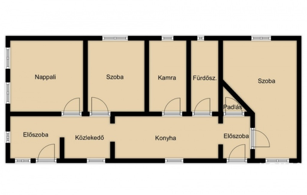 nappali + 2 hálószoba + előszoba + közlekedő +konyha + kamra + fürdőszoba