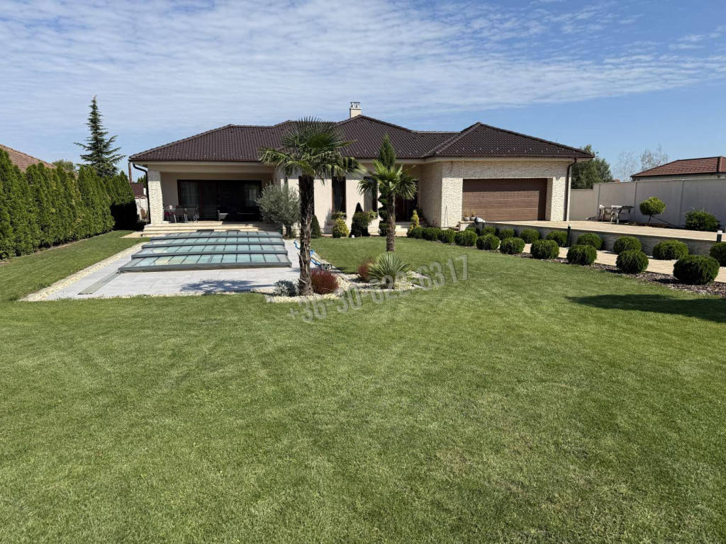A telek minden négyzetmétere a prémium minőséget tükrözi: automata öntözőrendszerrel kiépített, kertész által megálmodott zöld környezet, gondosan válogatott növények, valamint a süllyesztett, fedett és fűtött medence teremtik meg a mindennapi nyaralás élményét. A kerthez kapcsolódó nagy, fedett terasz (18 m2) ideális helyszín meghitt családi vacsorákhoz vagy exkluzív baráti összejövetelekhez.