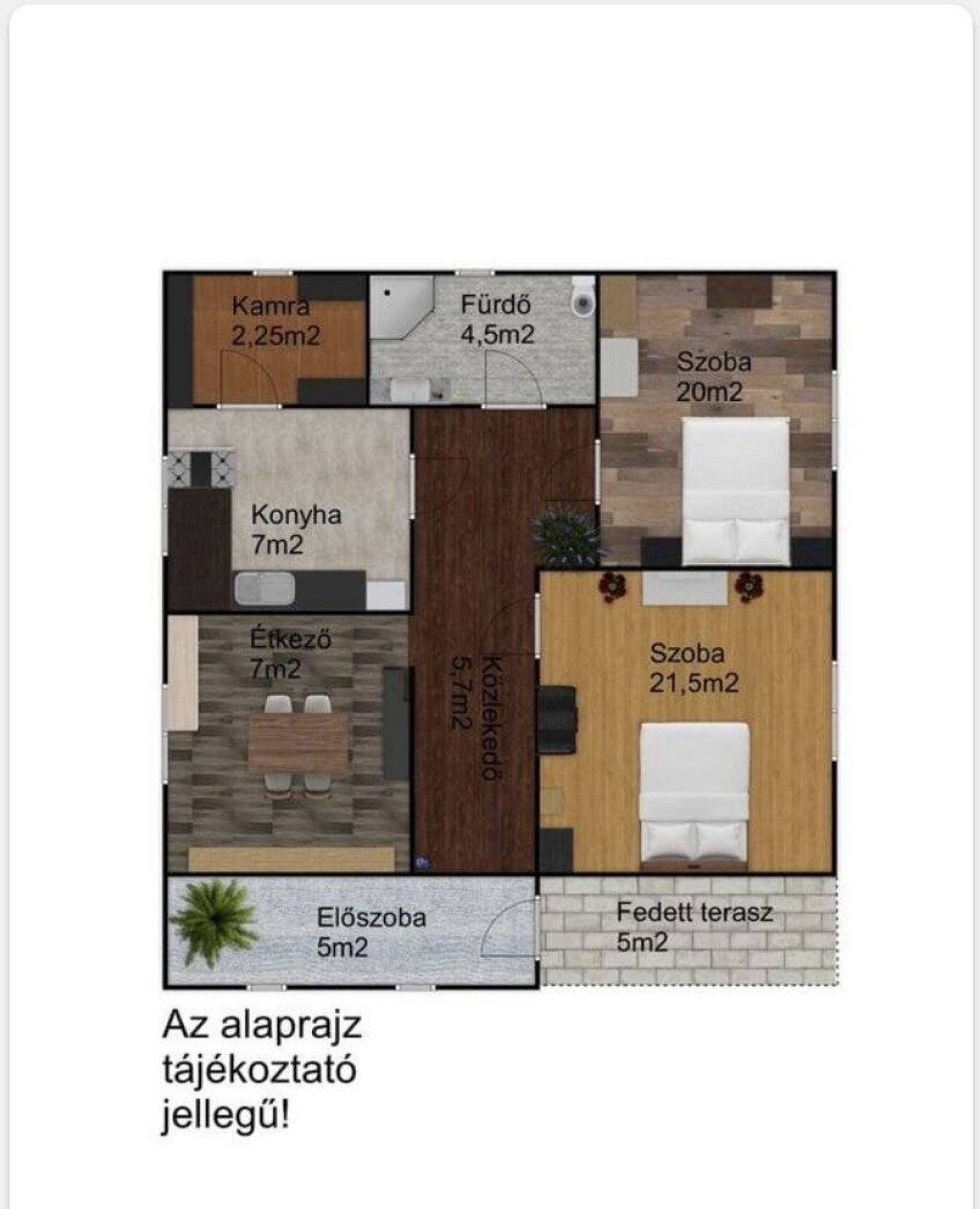 • Fa nyílászárók a szobákban, a többi helyiségben korszerű műanyag