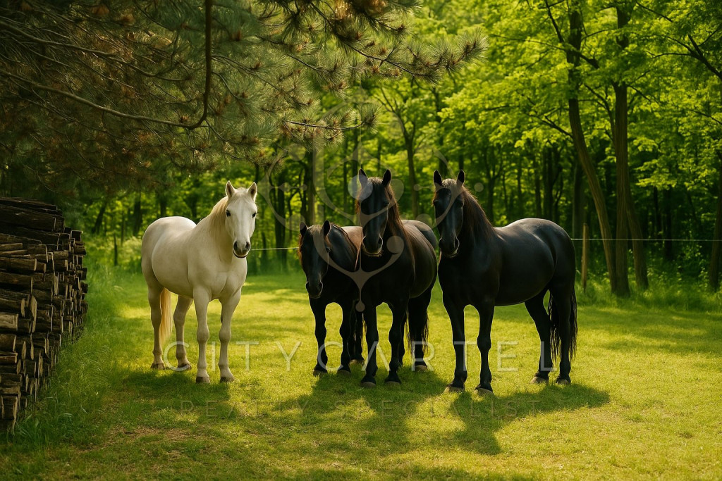 A rét fölött fátyolszerű köd sodródik, engedve a felkelő nap aranyló simításának. A harmat ezernyi apró gyöngyként ragyog a fűszálakon, a levegő friss, szinte érinthetően tiszta. A kúria széles tornácáról a tekintet lassan végigsiklik a végtelen zöldön, majd megakad a mozdulatlanul pihenő lovakon. A kertben a medence víztükre úgy őrzi a hajnal színeit, mintha egy festő most tette volna le az ecsetet. A konyha felől frissen őrölt kávé illata bontja meg a csendet – a birtok lassan ébredezni kezd.
