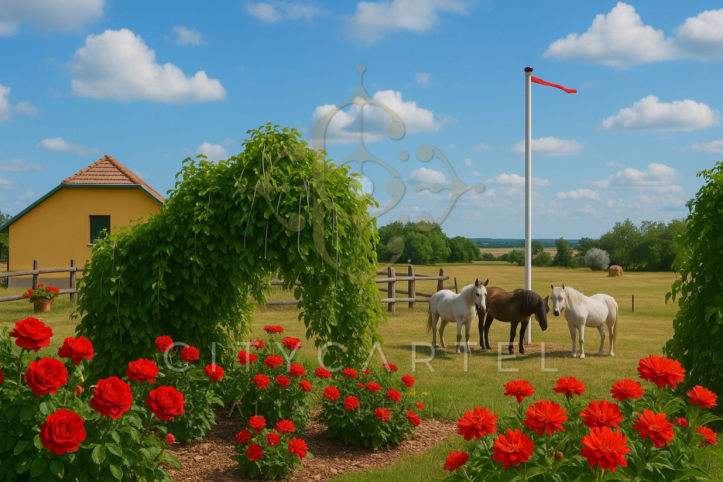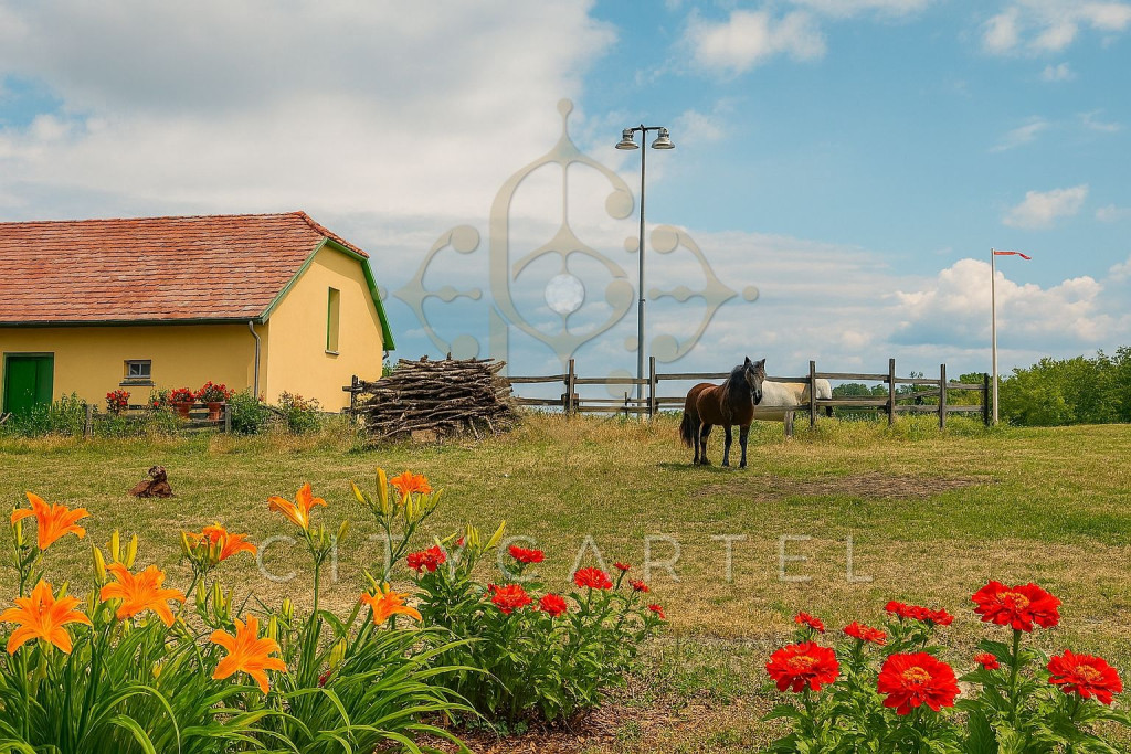 A birtok belső útja mentén a fűszálak között lágyan játszik a szél, a napfény apró foltokban táncol a kavicsos ösvényen. A melléképület árnyas tornácáról a legelő végtelen zöldje tárul fel; belső terei lakófunkcióra is könnyedén átalakíthatók, így akár vendégházként, személyzeti szállásként vagy műhelylakásként is új életre kelhetnek. Mögötte a hűvös istálló áll, ahol minden részlet a régi idők gondosságát idézi. A magtárban vaskos gerendák hordozzák a múlt súlyát, ugyanakkor tágas tere és karakteres megjelenése lehetőséget ad arra, hogy új funkciót kapjon. A tágas garázs akár 10 autó befogadására is alkalmas - emellett a telken belül több, kényelmesen kialakítható parkolási lehetőség is rendelkezésre áll, így nagyobb rendezvények vagy vendégforgalom esetén is bőséges a kapacitás.