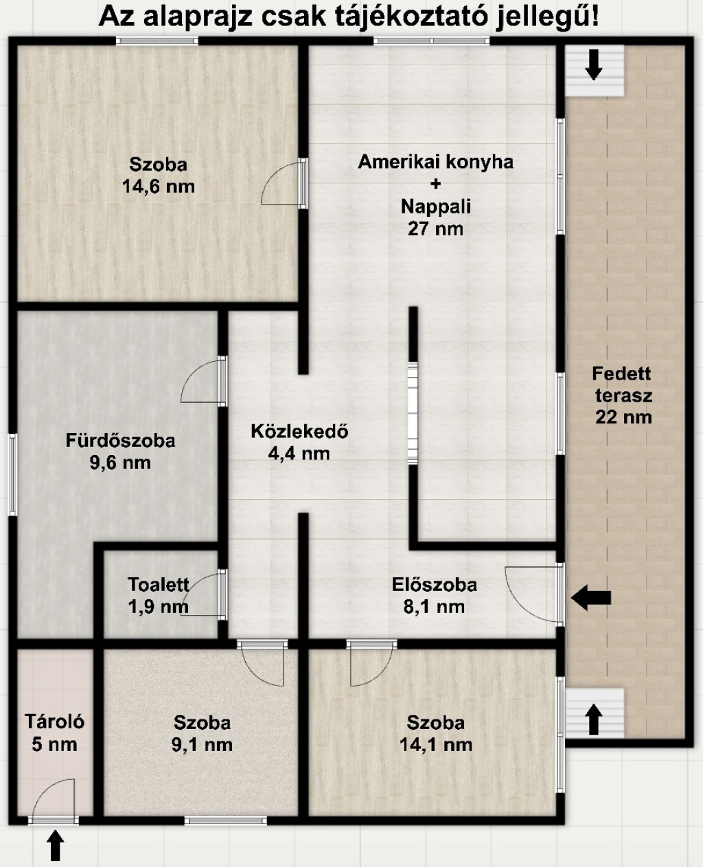 - Elrendezés: 3 szoba + amerikai konyhás nappali