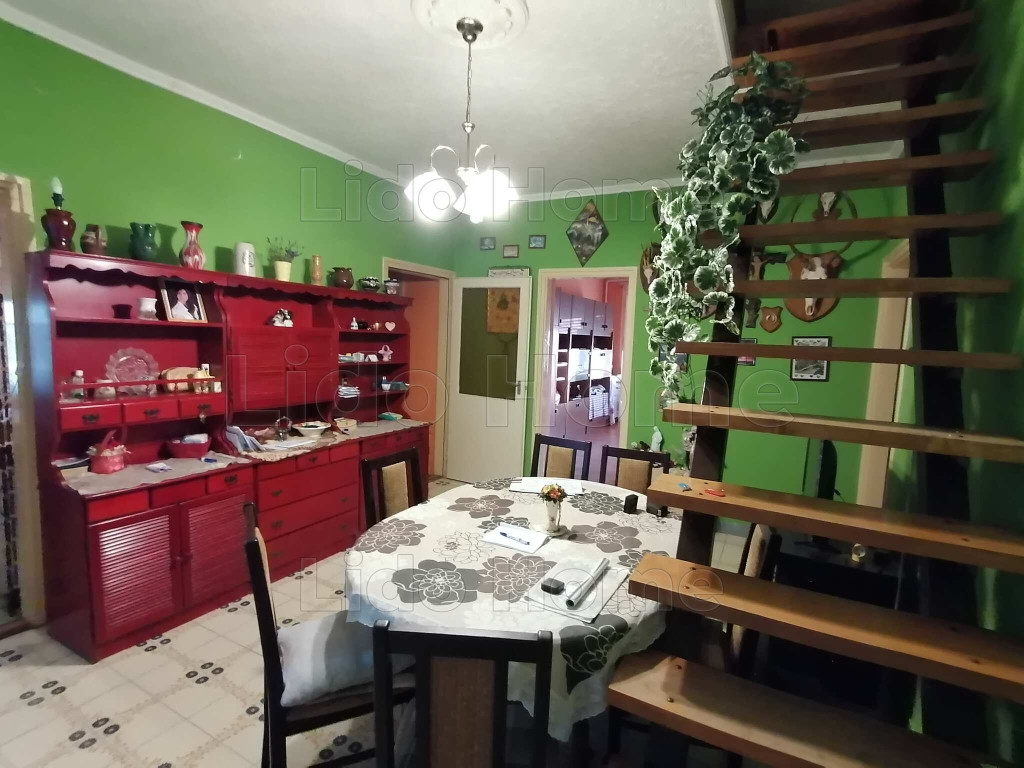 - A házban nappali + 3 szoba, nappali, konyha, fürdőszoba, külön wc, kamra illetve közlekedő található.