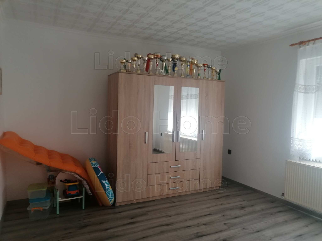 - A házban nappali + 3 szoba, nappali, konyha, fürdőszoba, külön wc, kamra, található.