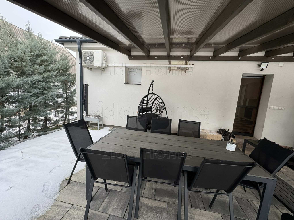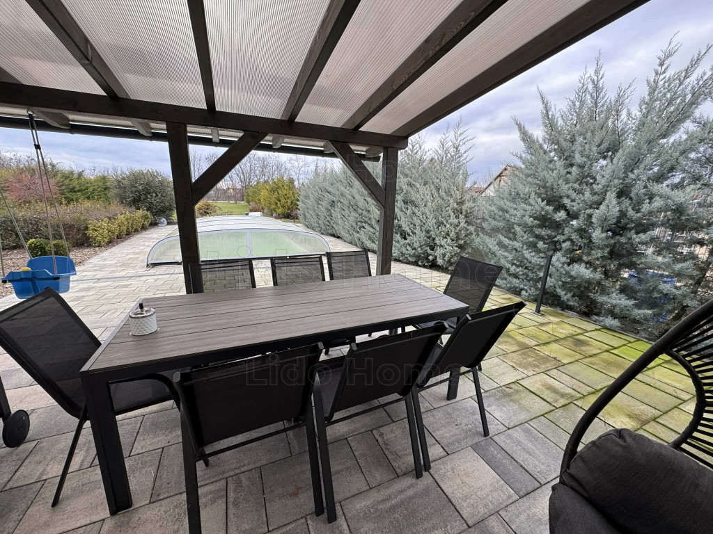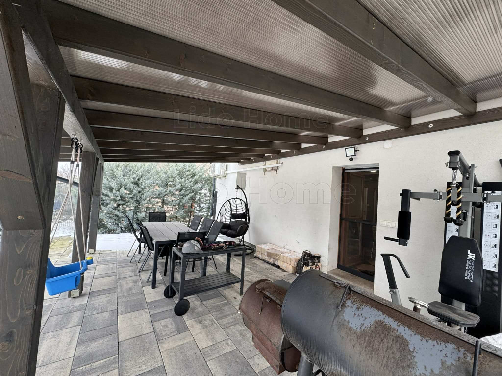 A házhoz tartozik egy 42 m²-es fedett terasz, amely ideális családi és baráti összejövetelekhez.