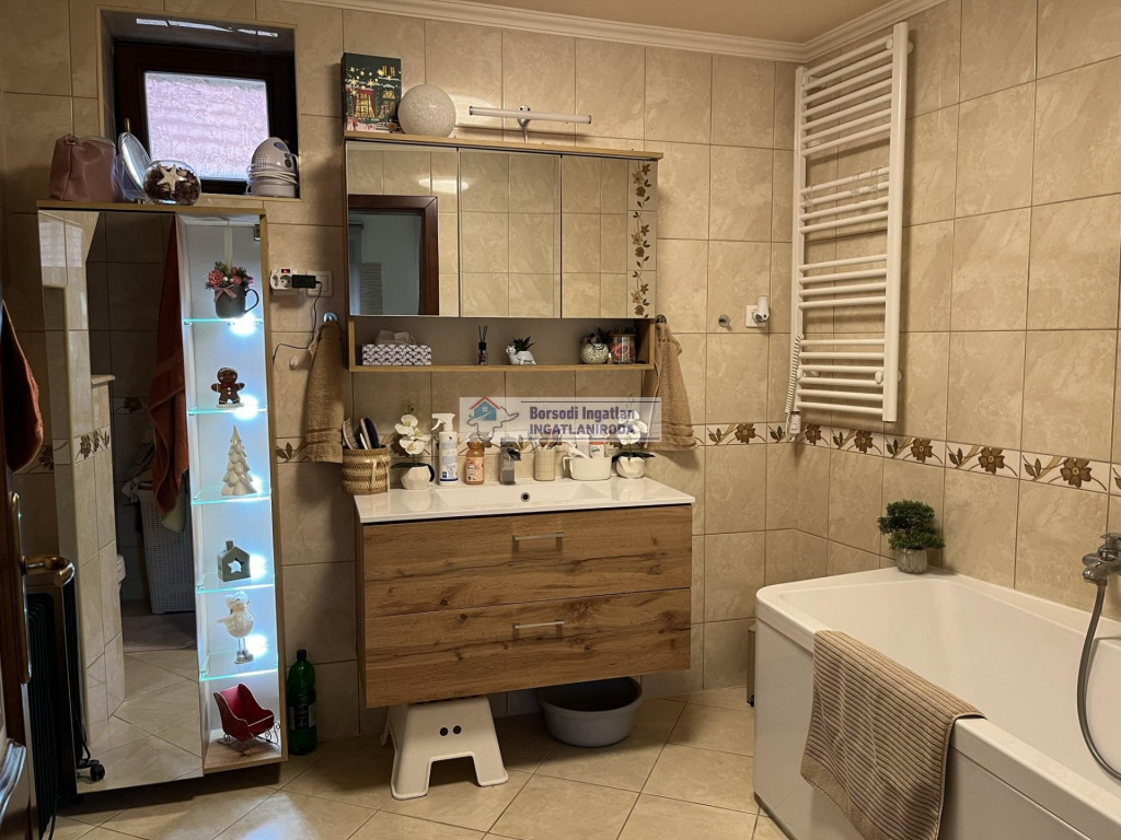 Fürdőszoba káddal, igényes beépített bútorral.. A vendég WC, rejtett előszoba....mind mind különleges megoldás.