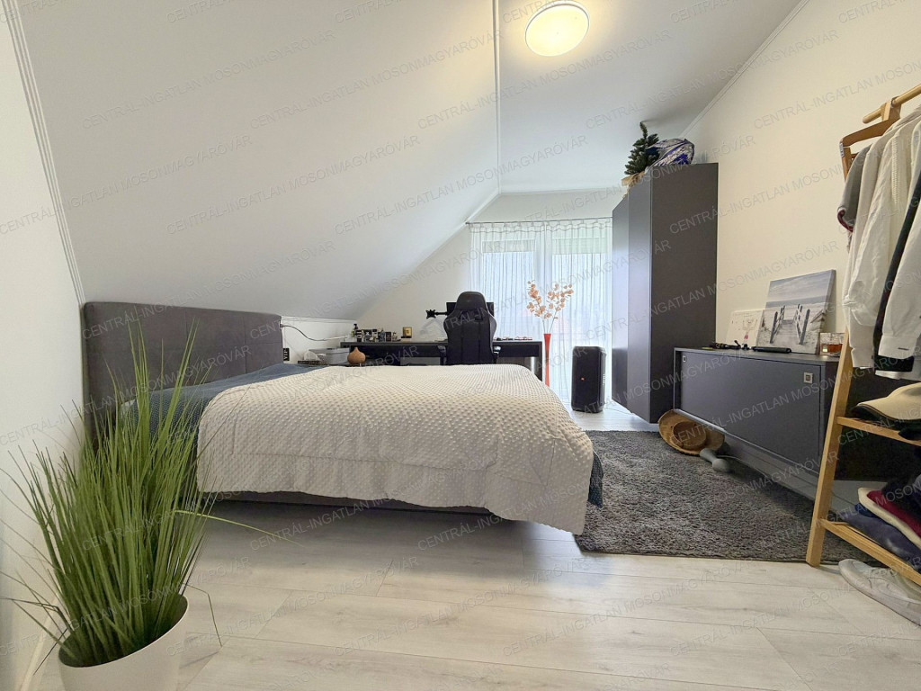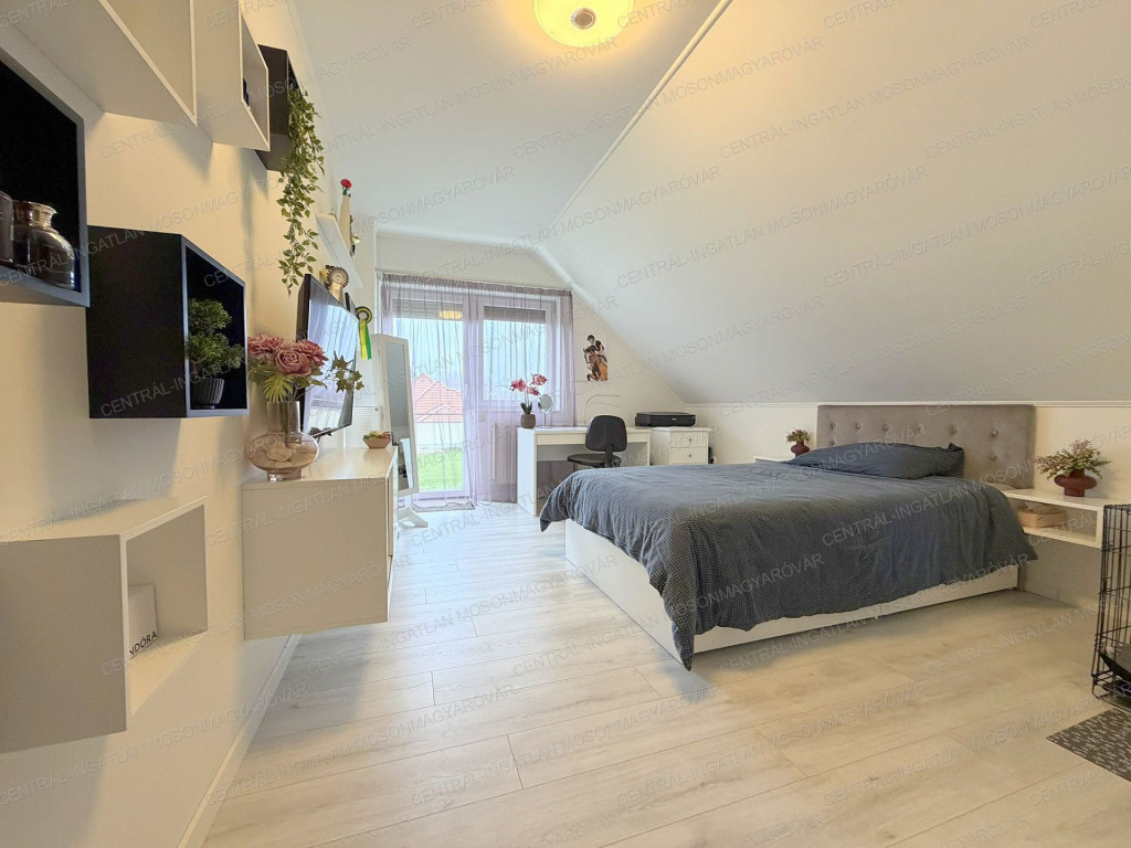 -Az emeleten 3 hálószoba, gardrób, tágas fürdőszoba, galéria található. Két szobából is ki tudunk menni a fantasztikus panorámát nyújtó tetőteraszra, innen csodás kilátás nyílik a természeti környezetre.