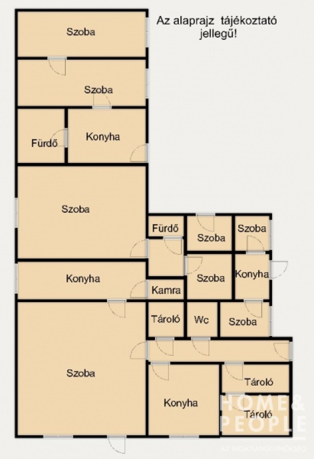 8 szoba, 3 konyha, 2 fürdőszoba, tárolók
