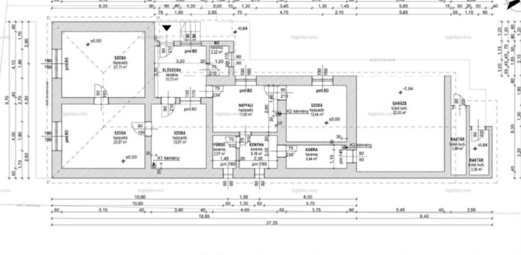A telken álló két épület, közös kapubejáróval, mégis egymástól jól elkülönülve helyezkedik el, ugyanazon a helyrajzi számon. A házak alapterülete 106 m² és 83 m², szerkezetük kő és vályog, amelyek a hagyományos építési módnak köszönhetően erős, masszív falazattal rendelkeznek. Bár az ingatlan kb. 20 éve lakatlan, szerkezetileg stabil, felújítással kiváló otthonná vagy befektetéssé alakítható.