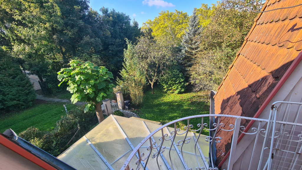 A házhoz két hangulatos terasz tartozik, ahonnan lenyűgöző kilátás nyílik a környező erdőre és parkra.