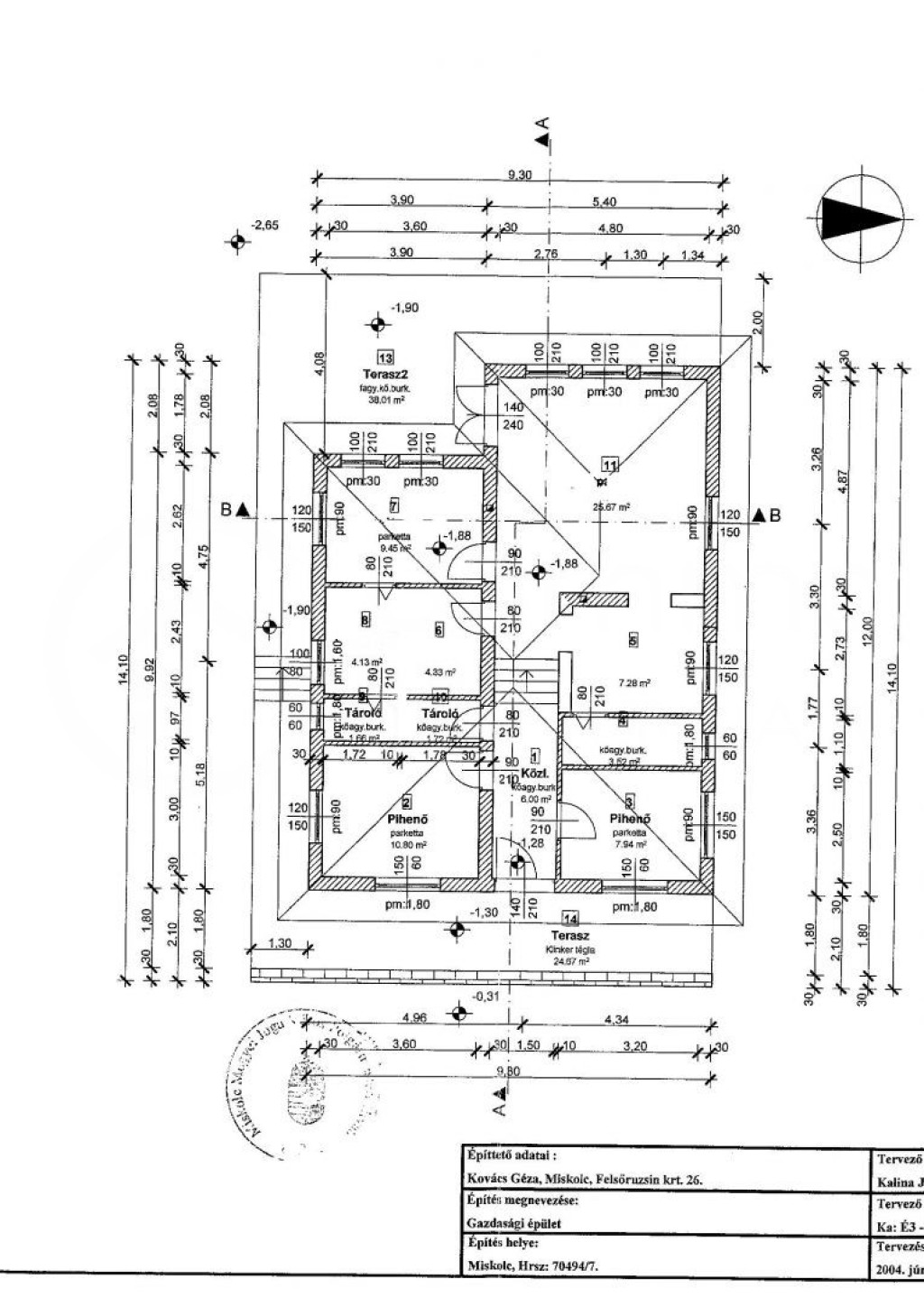 A lábazati fal tetejének síkjában a talajnedvesség ellen 2 rtg-ű szigetelés készült, a
