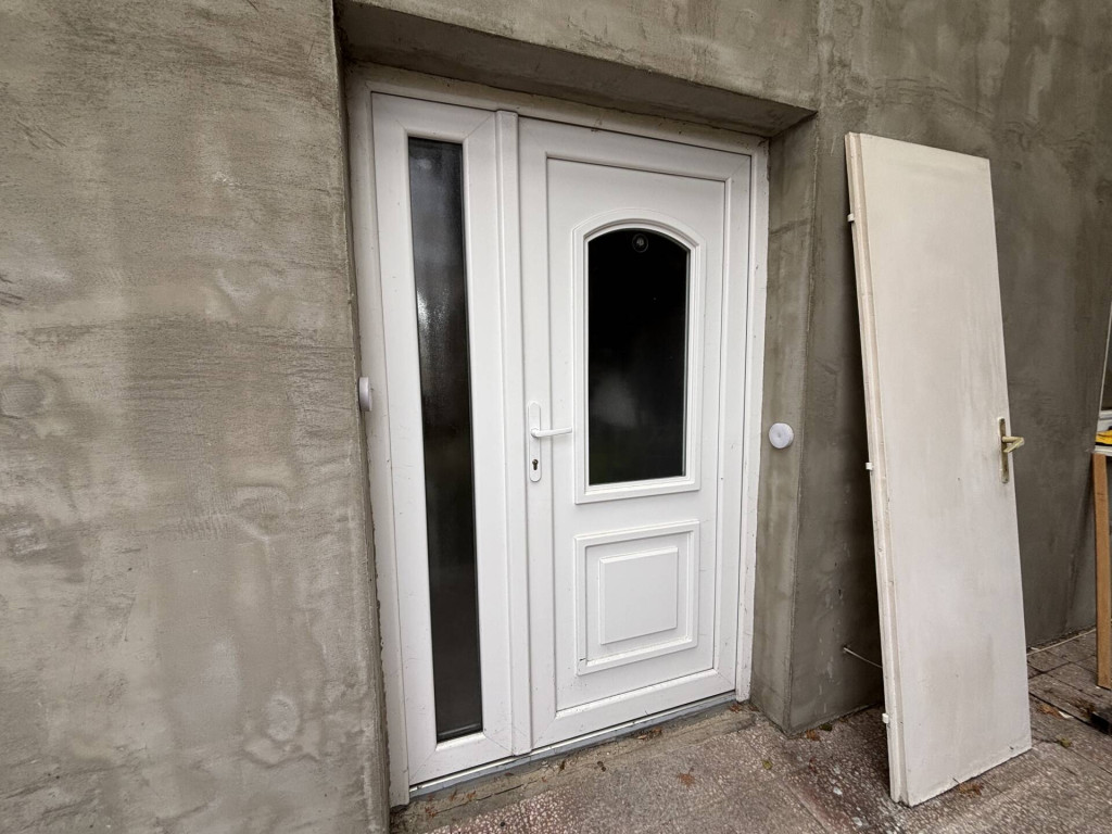 A nyílászárók műanyag kivitelűek, a bejárati ajtó szintén műanyag, míg a beltéri ajtók tömör fából készültek, ami minőségi megjelenést biztosít. Az épület mögött 6 m²-es terasz és egy kis kert található, elöl pedig füves előkert és fedett, dupla beállós garázs szolgálja a kényelmet. Az ingatlan alatt egy közel 60 m²-es, száraz pince is rendelkezésre áll, amely tárolásra vagy akár egyéni igény szerint más funkcióra is alkalmas lehet.