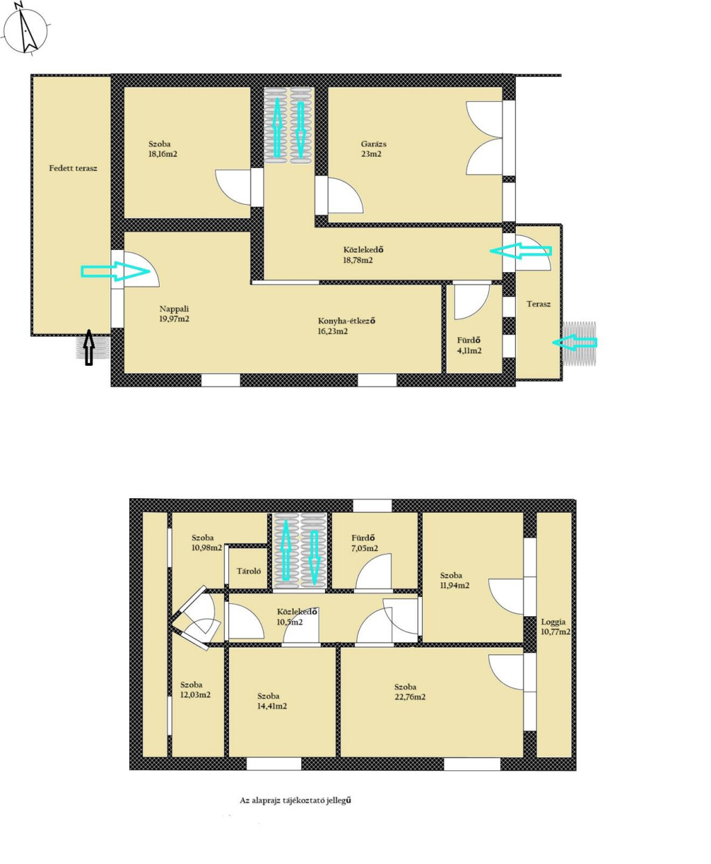 Az ingatlan keleti tájolású, így a reggeli és délelőtti órákban bőséges természetes fény járja át a tereket. A ház tágas, világos, napfényes, jól átgondolt elrendezésű, minőségi anyagok felhasználásával karbantartott otthon.