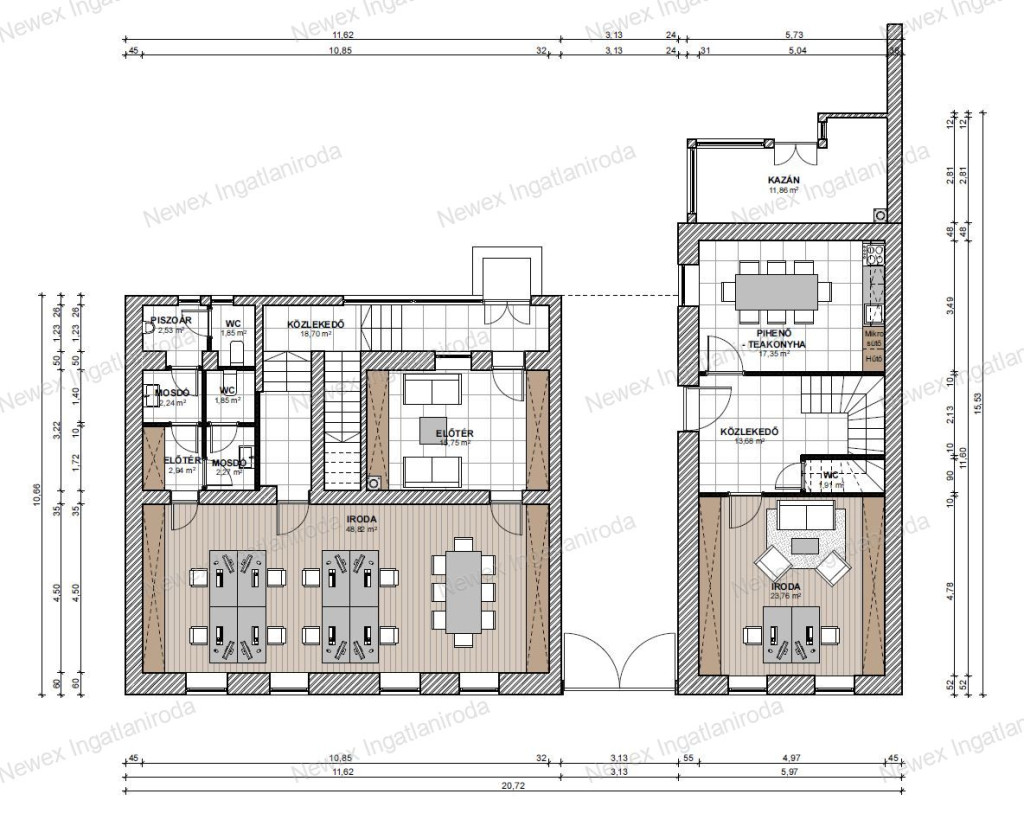 Az ingatlan összesen közel 416 m² hasznos alapterülettel rendelkezik, így olyan lehetőséget kínál, amely a piacon ritkán elérhető ebben a formában.