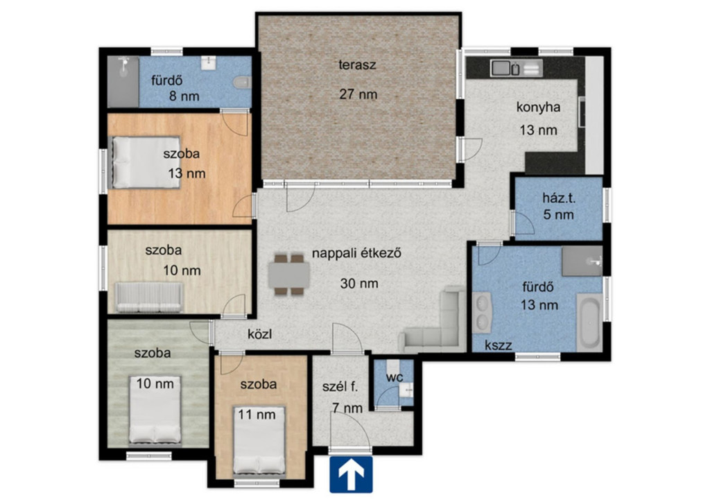 - 122 nm-es hasznos alapterület.