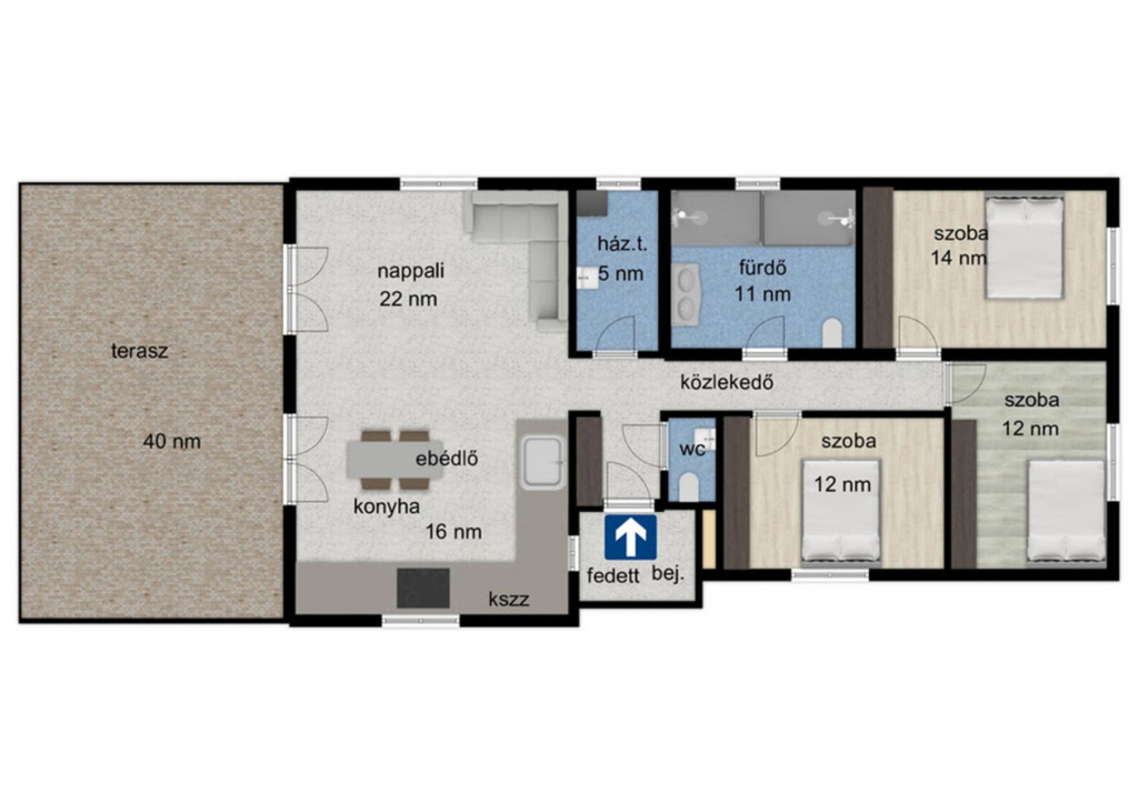 - Amerikai konyhás nappali, 3 hálószoba, nagy méretű fürdő, külön WC, háztartási helyiség.