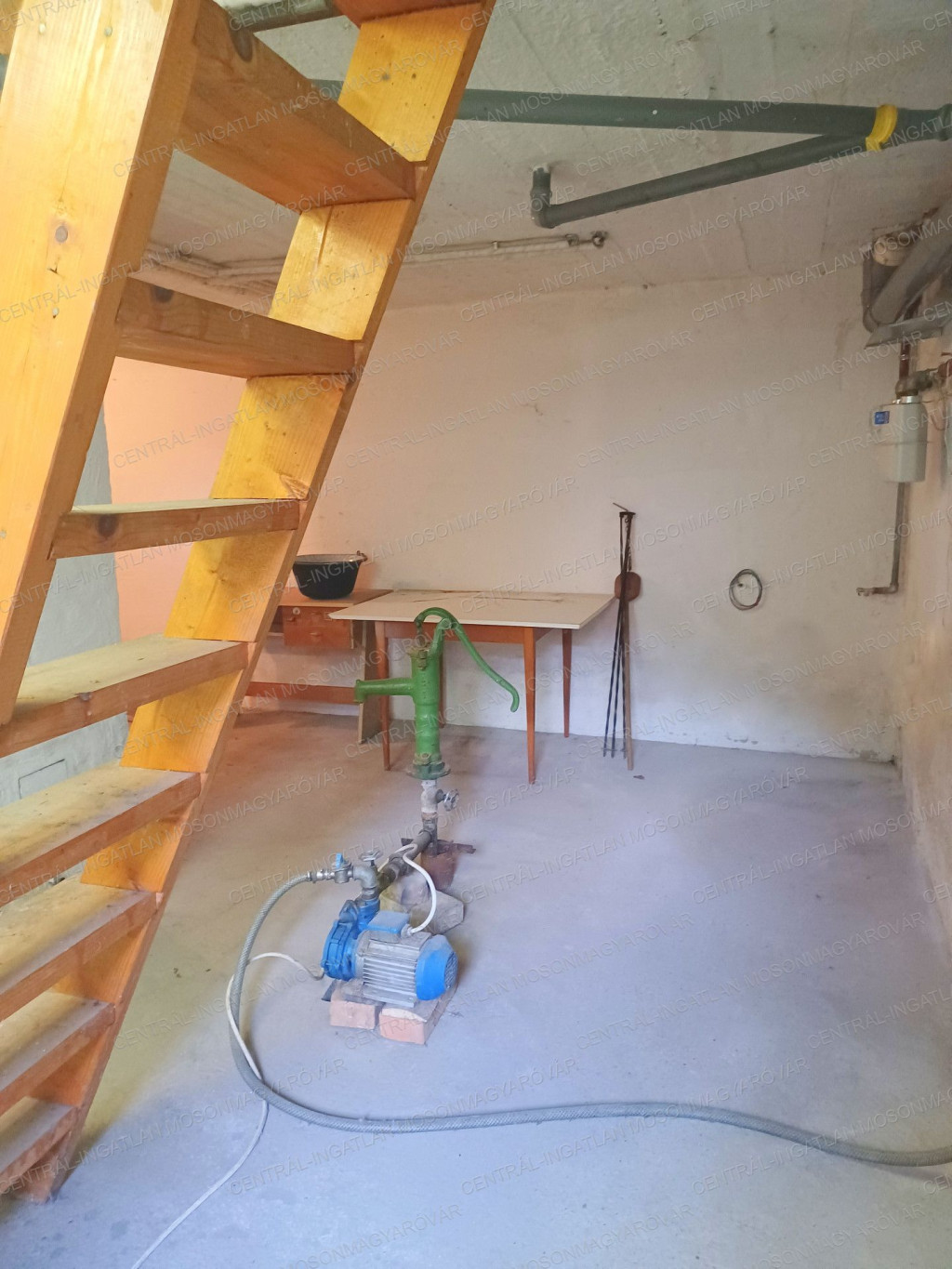 - A családi ház alatt felerészben pince készült, itt található a gázkazán és a kút is ide került, így nincs szükség télen a szivattyú fagymentesítésére. A pince száraz, betonozott aljzattal rendelkezik. Megközelíthető a lakótérből és kívülről is.
