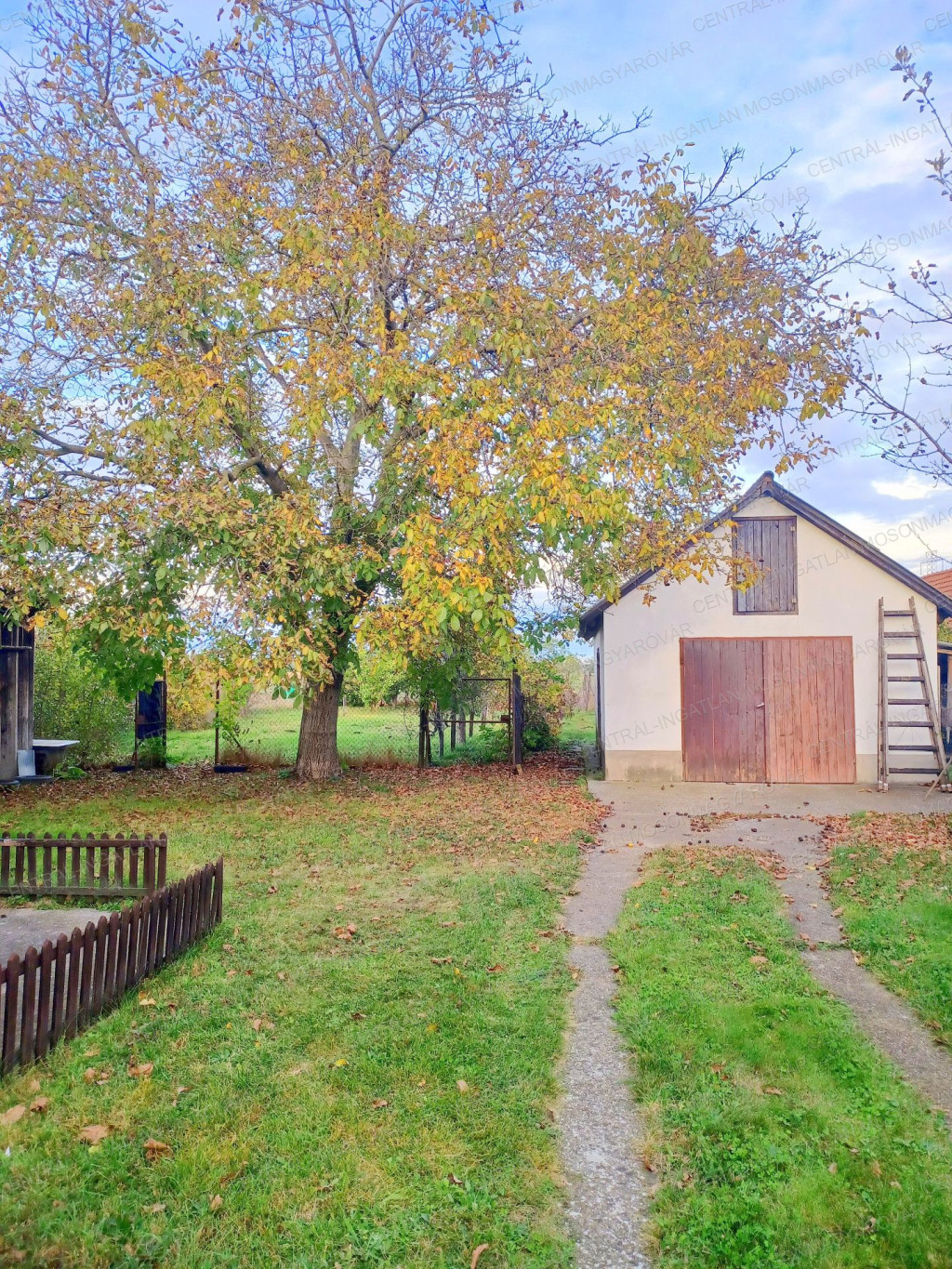 -A ház elhelyezése telekhatáros beépítéssel készült. A kert gyümölcsfákkal, itt nem kell várni a bőséges termésre, mint egy új építésű háznál és van bőven hely kertészkedésre is.