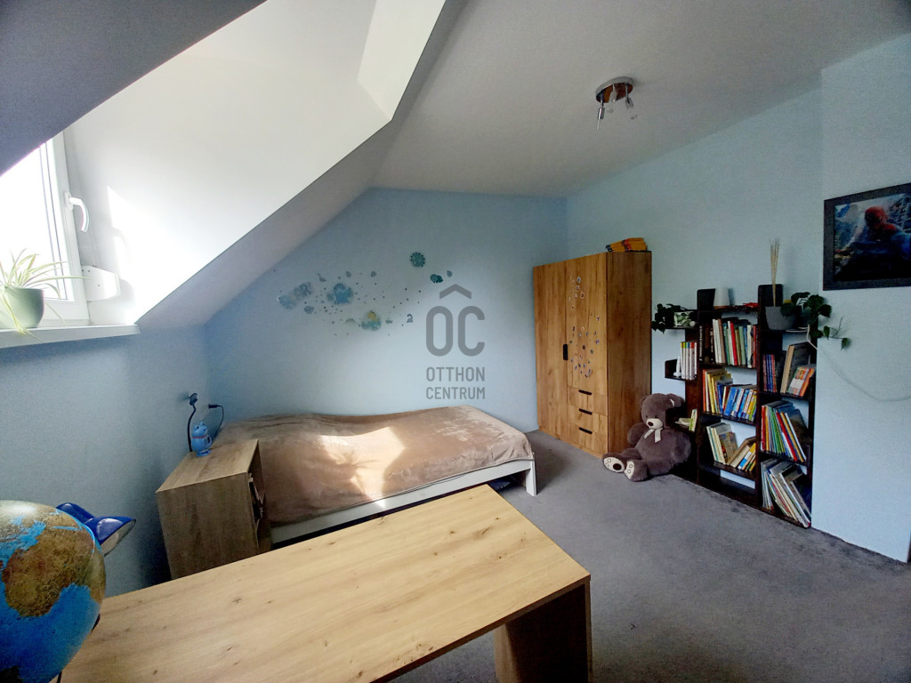 Ez az 1996-ban épült, stabil szerkezetű, háromszintes családi ház nemcsak méreteivel, hanem elrendezésével is ideális választás lehet akár nagyobb család számára is. A közel 225 nm-es alapterület három szinten biztosít kényelmes életteret, miközben minden helyiség jól elkülönül, mégis harmonikusan kapcsolódik egymáshoz.A ház alatti teljes szuterén igazi érték: garázs, kazánház és két tárolóhelyiség gondoskodik arról, hogy mindig legyen hely az autónak, a szerszámoknak vagy akár egy hobbi kialakításának is. Az alapszinten a közös családi pillanatoké a főszerep: étkező, konyha kamrával, valamint két világos, keleti tájolású szoba biztosítja a mindennapok kényelmét. A tetőtérben további három külön nyíló szoba kapott helyet, ahol minden családtagnak jut egy saját kis tér, az egyik szobához tartozó loggia pedig kellemes elvonulást kínál egy nyugodt reggeli kávéhoz vagy esti pihenéshez.