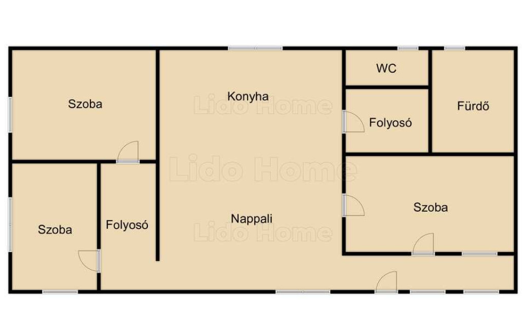 Az ingatlan elrendezése praktikus: három hálószoba, tágas amerikai konyhás nappali, fürdőszoba, külön wc, spájz és egy raktárhelyiség is megtalálható benne .