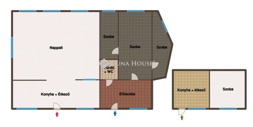 - összesen 120 m2-es, 3 külön bejáratú lakrész