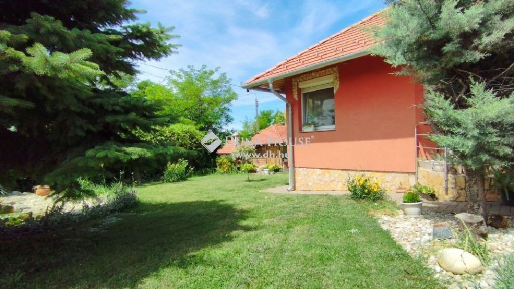 A tágas, parkosított, gyümölcsös telken található épített grillező, bográcsozó, nagyméretű kutyakenel, 25 nm-es tároló, kemence, valamint egy kerti tó.