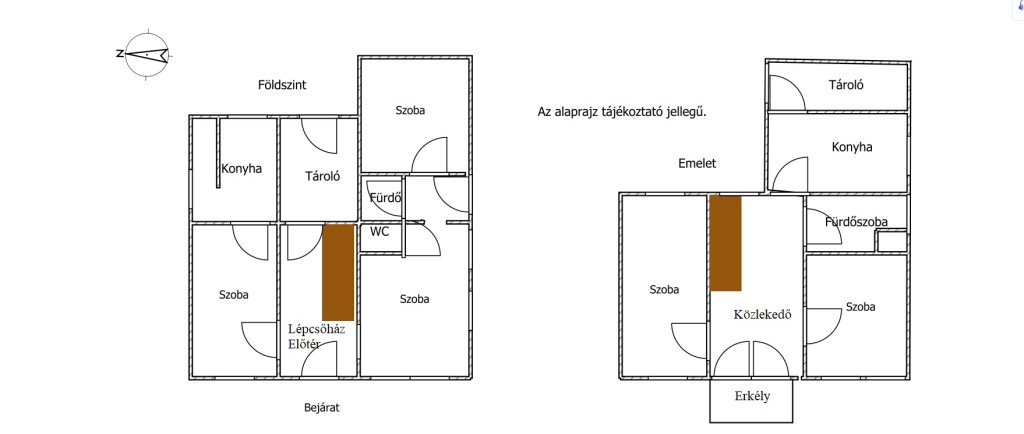 - Földszint: Előszoba, 2 tágas szoba, Zuhanyzó, Kamra, Pincelejáró, WC
