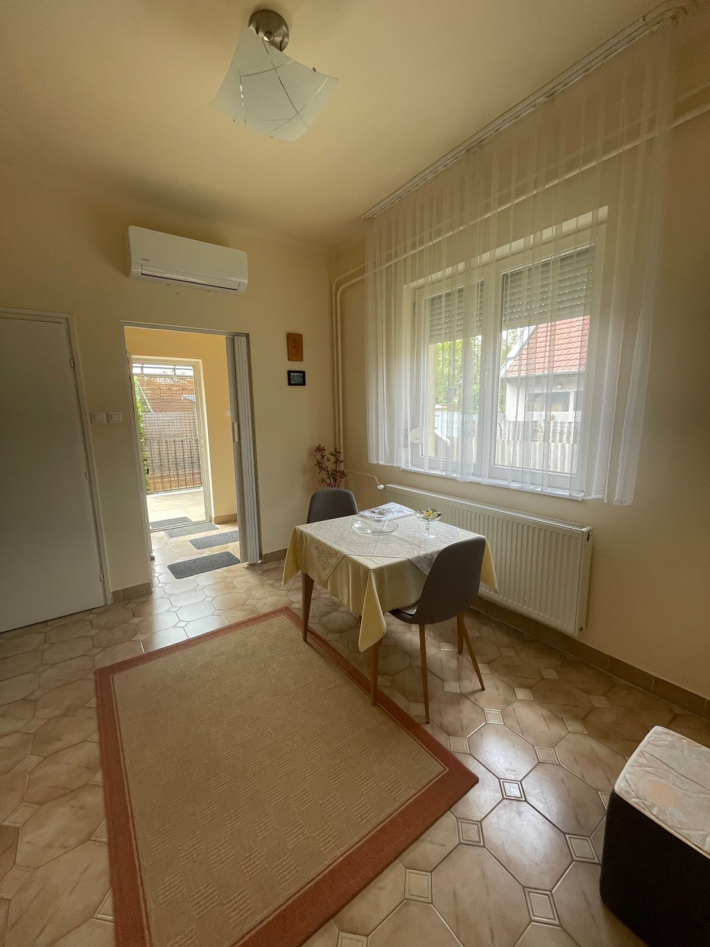 Külsőleg szigetelt, redőnnyel és rovarhálóval felszerelt fa nyílászárókkal rendelkezik. Egyedi gázfűtés biztosítja a meleget radiátor hőleadókkal. 2 db hűtő - fűtő klíma került beszerelésre.