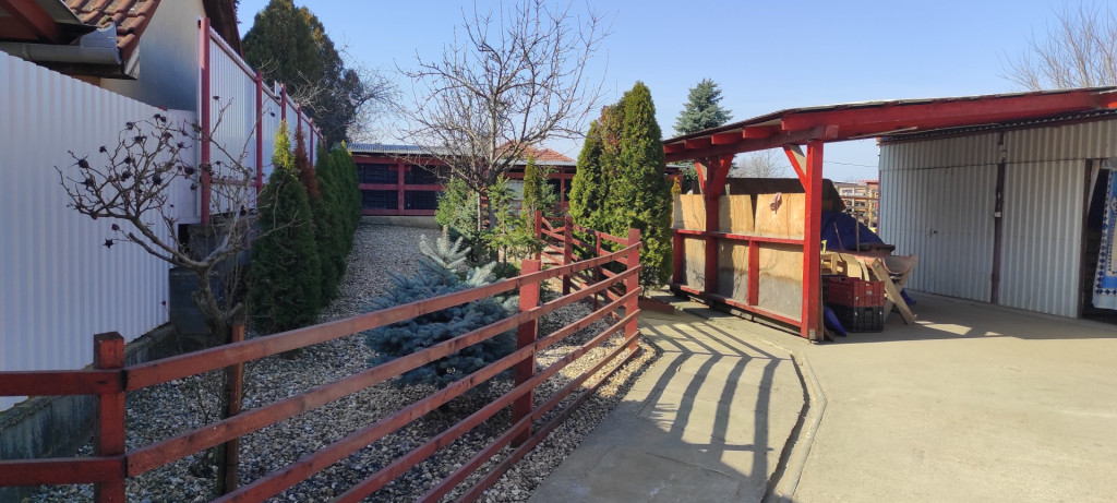 Gépkocsi tárolása zárt beállón biztosított. Az udvaron több könnyűszerkezetes melléképület is található, melyek akár bonthatóak is , ha nagyobb pihenőkertet szeretnénk.