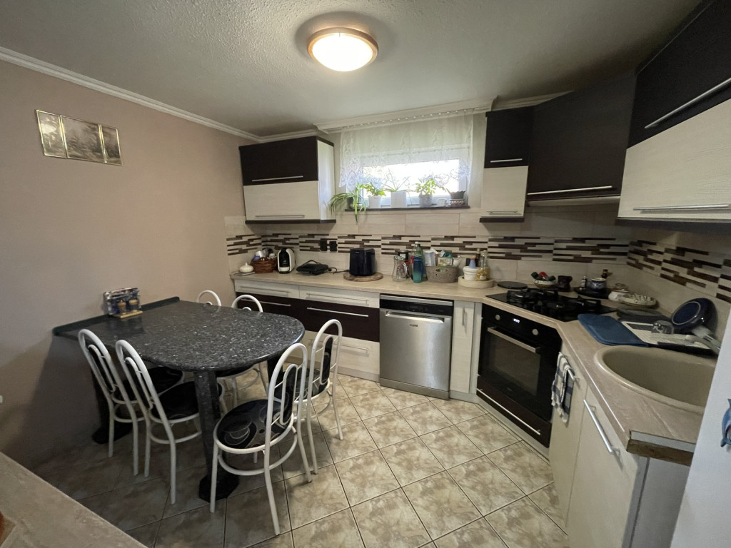 Lakótér elosztása: 3 tágas szoba, nappali, gépesített konyha, kamra, külön fürdőszoba és WC