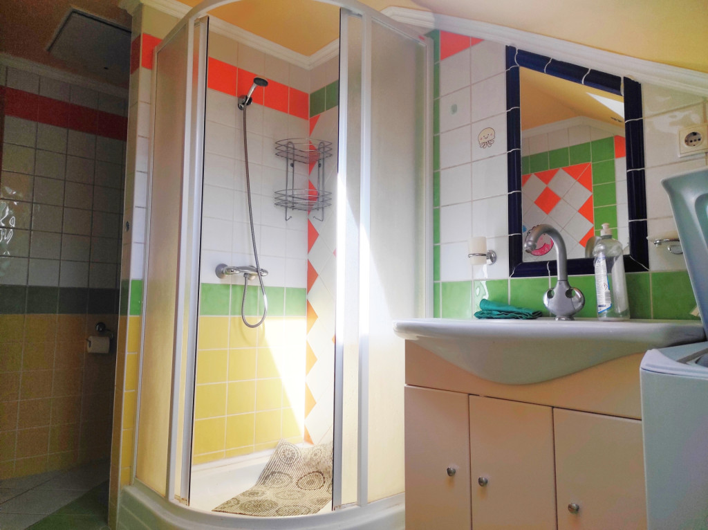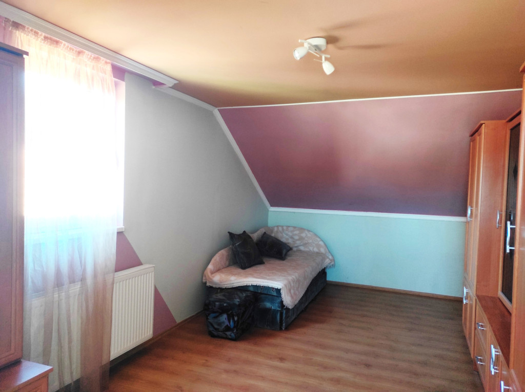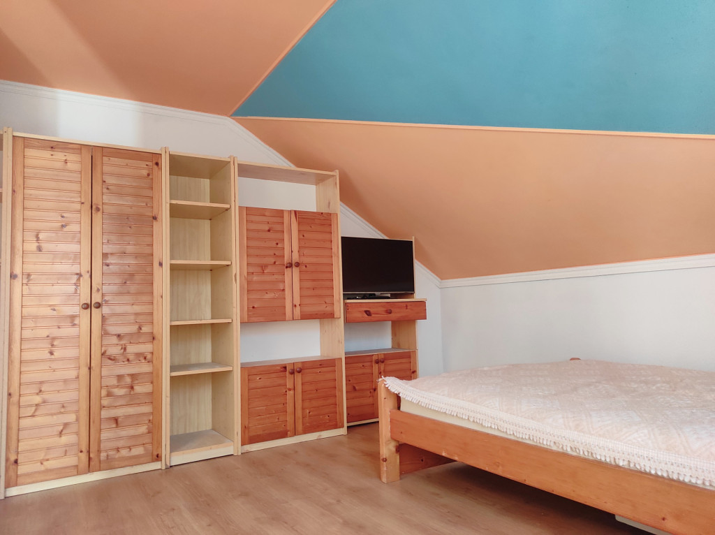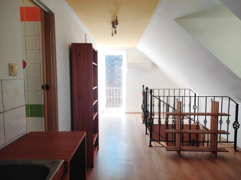 Emeleten, 2 szoba, fürdőszoba, galéria, erkély.