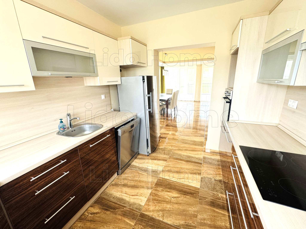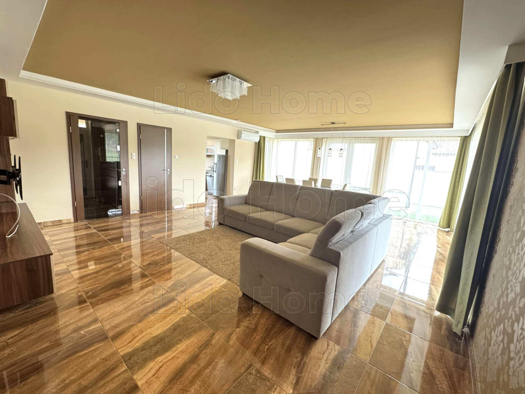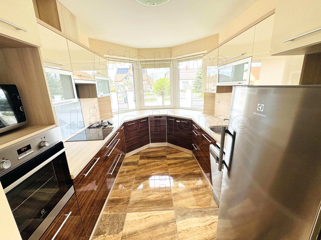 A 170,5 m2-es lakótér egy szinten helyezkedik el, ami a mindennapi használat során kényelmes és praktikus megoldást jelent. A központi élettér egy közel 45 m2-es amerikai konyhás nappali étkezővel, amely világos, tágas és jól bútorozható, ideális családi együttlétekhez. A konyha gépesített, bőséges tárolóhellyel és kamrával egészül ki.
