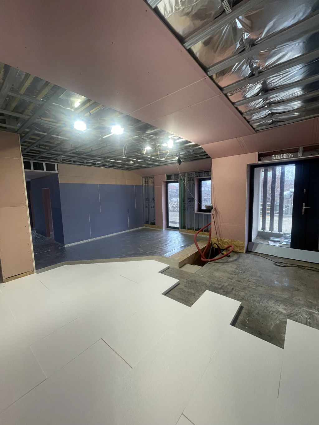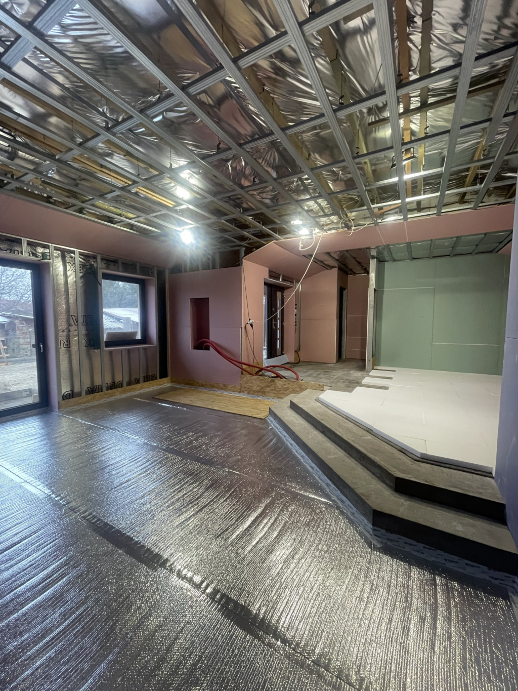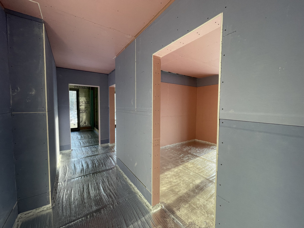 Az álmennyezetben Heliosz hővisszanyerős szellőztető rendszer alap szerelése is megtörtént.