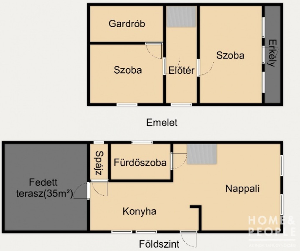 - Amerikai konyhás nappali, + 2 háló, fürdő, spájz, gardrób, erkély, fedett terasz(35m²)