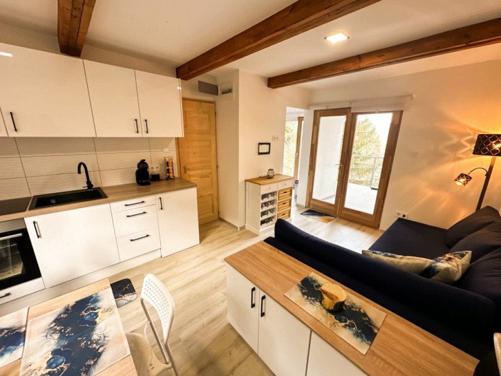 Az házban amerikai konyhás nappali étkezővel, külön hálószoba,