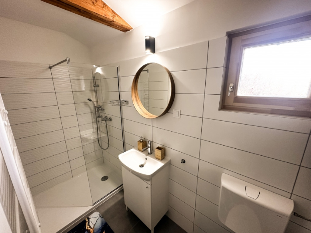 valamint fürdőszoba WC-vel került kialakításra. A belső tér letisztult,