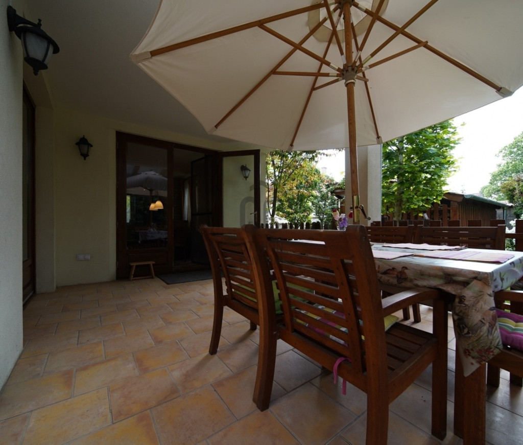 Az ingatlan kedvező tájolásának köszönhetően a nap körbejárja az épületet, így a belső terek egész nap világosak. A ház mellett álló platánfák a nyári hónapokban természetes árnyékolást biztosítanak, hozzájárulva a kellemes komfortérzethez.
