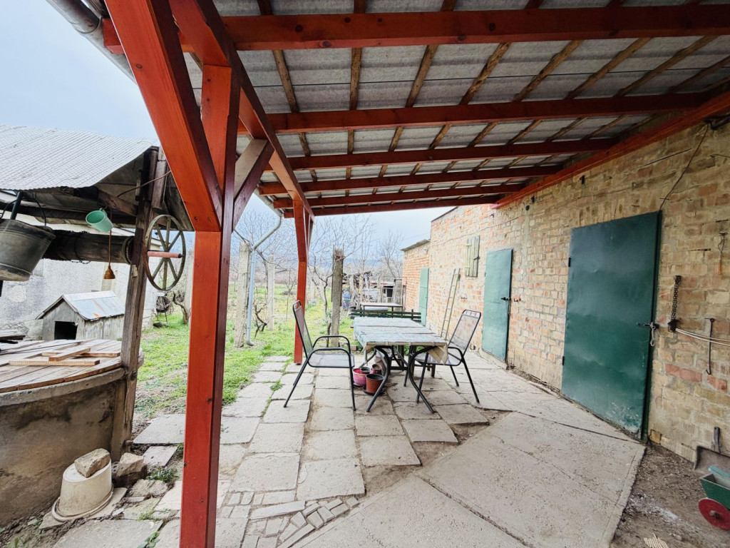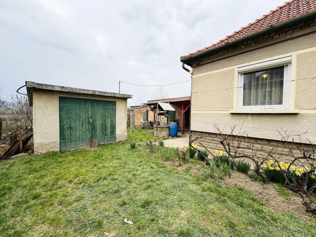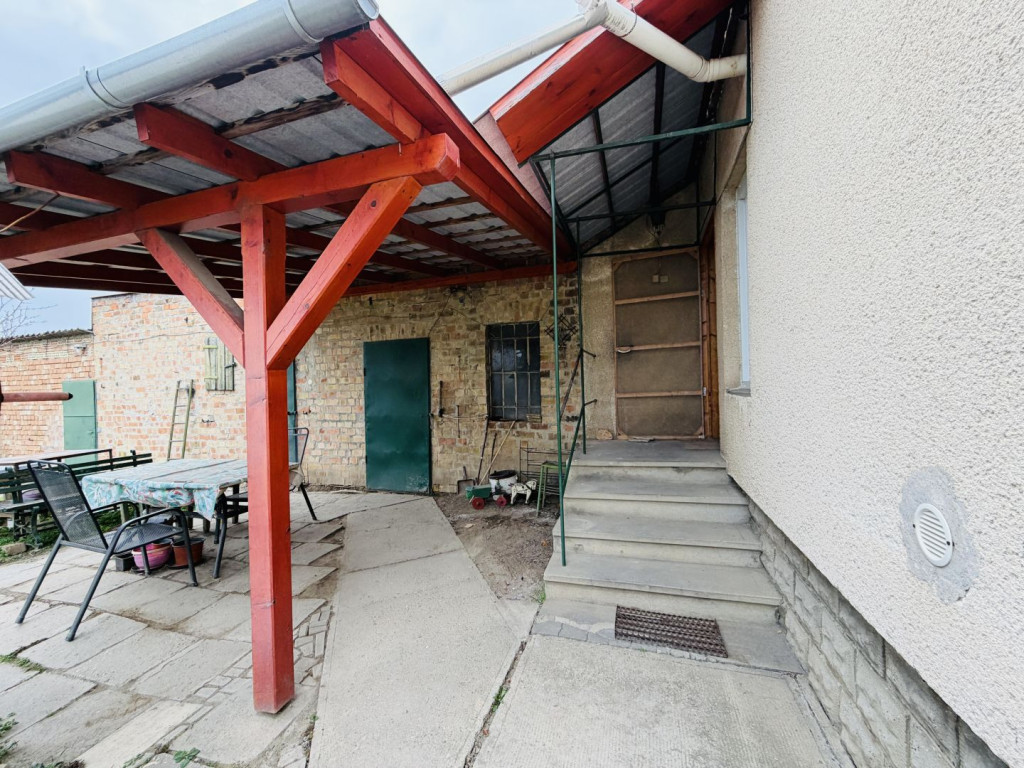 2 szoba elosztású családi házat, hozzá épített TÁROLÓKKAL, PINCÉVEL, FEDETT TERASSZAL (15m2) és egy ÖNÁLLÓ GARÁZZSAL (20m2)