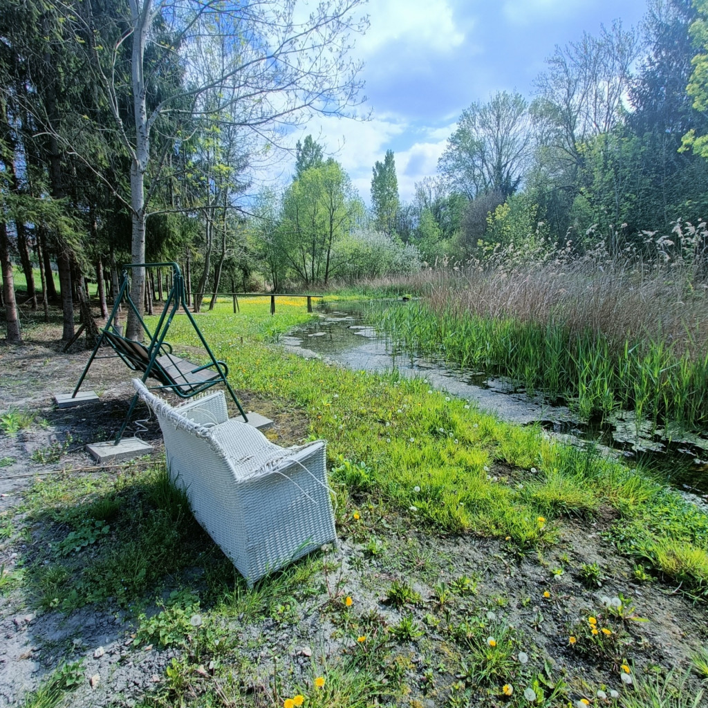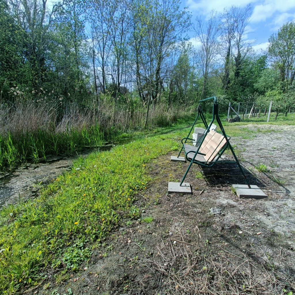 A tulajdonos már megkezdte egy pihenőhely kialakítását a telek tó felőli részén, ahonnan zavartalanul élvezhető a természet közelsége, a csend és a nyugalom.