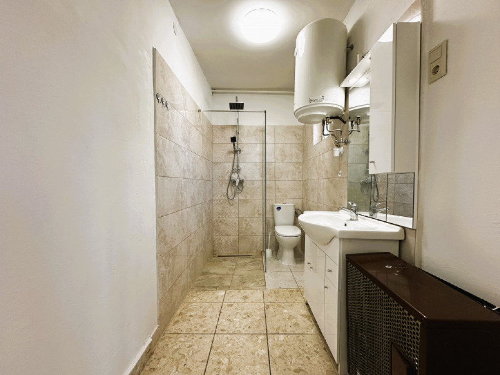 Víz és csatorna az üzlethelyiség melletti mellékhelységben és az utcafronti műhelyben található.