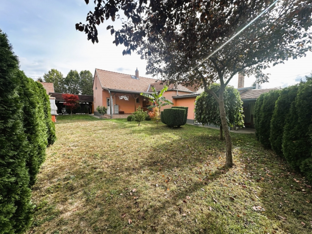 A 406 m2-es telek igazi ékszerdoboz: szépen gondozott udvar, örökzöldek, gyümölcsfák, fedett terasz és kerti grillező biztosítja a családi összejövetelek vagy a baráti esték hangulatát. A kertben még különleges dísznövények, sőt banánfa is helyet kapott, ami igazán egyedi hangulatot ad.