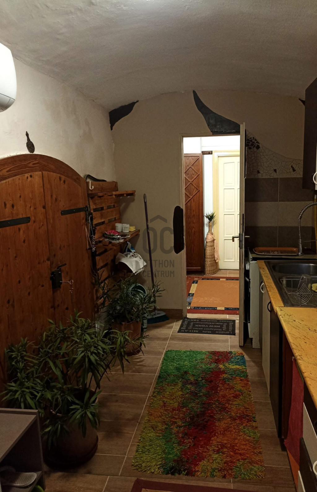 Im Erdgeschoss gibt es 3 Fenster mit Blick auf die Straße und hier befinden sich 2 Zimmer, ein Badezimmer und ein WC sowie die Küche, die perfekt für den Alltag älterer Menschen geeignet sind. Interessant ist, dass von hier aus ein gut erhaltener, trockener Keller unter dem Haus zugänglich ist. Gegenüber der Eingangstür der Erdgeschosswohnung befindet sich ein überdachter, auf einer Seite offener Garagenplatz, der für 5 Millionen Forint erworben werden kann.